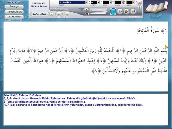 Kur’an Ayetlerini, İslam Alimlerinin nasıl yorumladığını, tek ekran veya ayrı ayrı ekranlarda okuyabileceksiniz. Ayrıca Hatim ve Türkçe Meal dinleyebilirsiniz.Bu programın Hatim ve Meal seslerini hem Bilgisayarda hem de DVD oynatıcılarda kullanabilirsiniz.